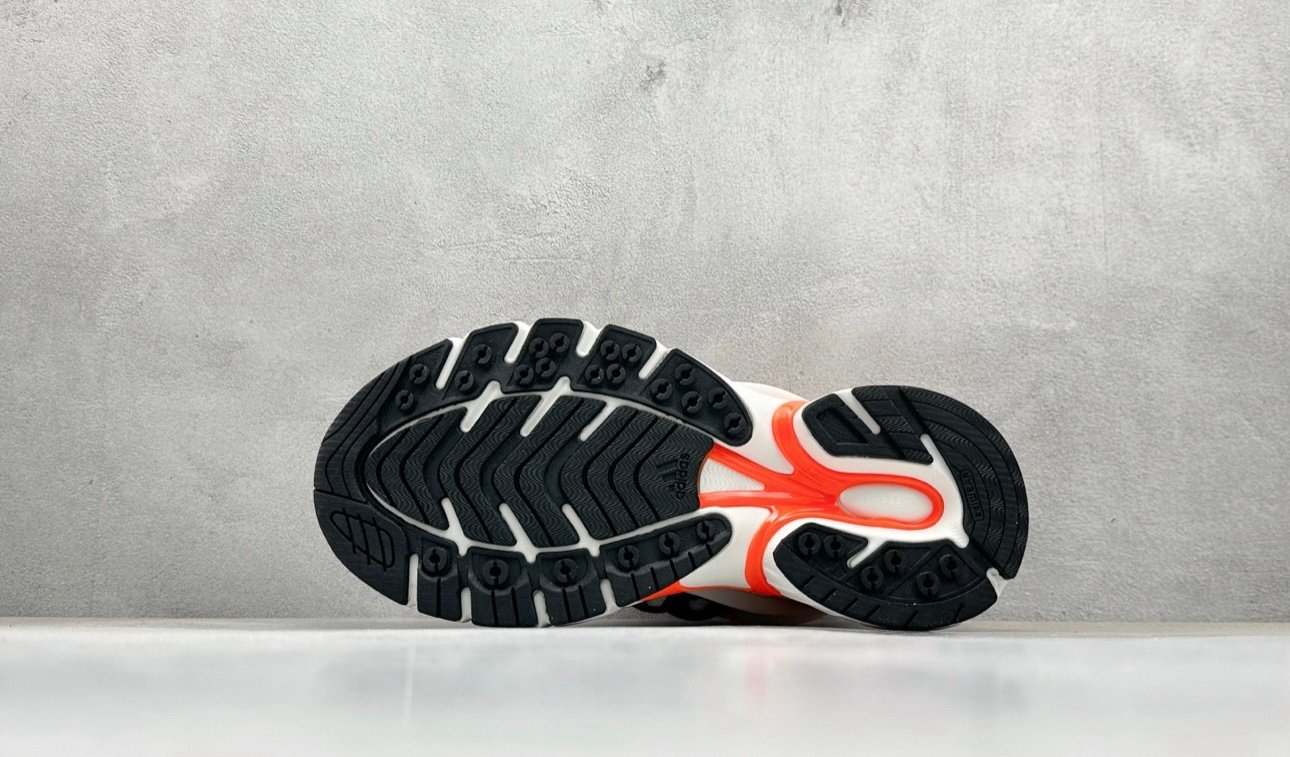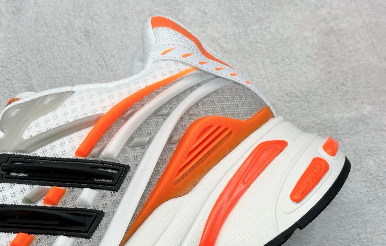 Making its debut at Paris Fashion Week in January 2025, the Pharrell x VIRGINIA x adidas Adistar Jellyfish takes inspiration from the Adistar Cushion 3. The lifestyle runner sports a white mesh upper with wavy TPU overlays that sweep across the side panel in matching white and vibrant orange hues, forming an exoskeletal structure that calls to mind pulsing jellyfish tentacles. In addition to glossy black three-stripes, branding elements include a stylized Jellyfish logo on the tongue and sockliner. The sneaker rides atop a bulky foam midsole with Adiprene cushioning in the heel.